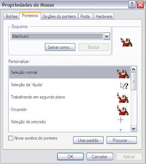 O tema de Natal da Microsoft ainda conta com um cursor do Papai Noel. São duas posições diferentes. Na primeira, o Papai Noel fica com o braço esticado, indicando para onde você está clicando. No lugar da famosa ampulheta do Windows, entra o Papai Noel tocando o sino. O cursor é um dos elementos principais deste tema, afinal a imagem do Bom Velhinho no seu mouse vai lembrá-lo constantemente que o dia 25 está cada vez mais perto!